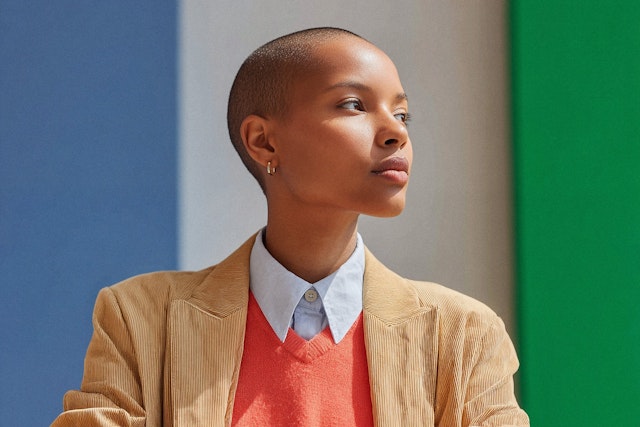 - Dramatic lightingTeal backgroundPortraitBlack bob haircutMakeupContemporaryArtisticModelDewy skinVibrantSleek lookCalmDynamic postureSparkling earringsSide profileBlonde hairBaldMuaUrbanSharp jawlineNeutral tonesShaved headMonochromeBlunt bangsBlack and whiteOval sunglassesStyleSereneIndividualityEditorial
