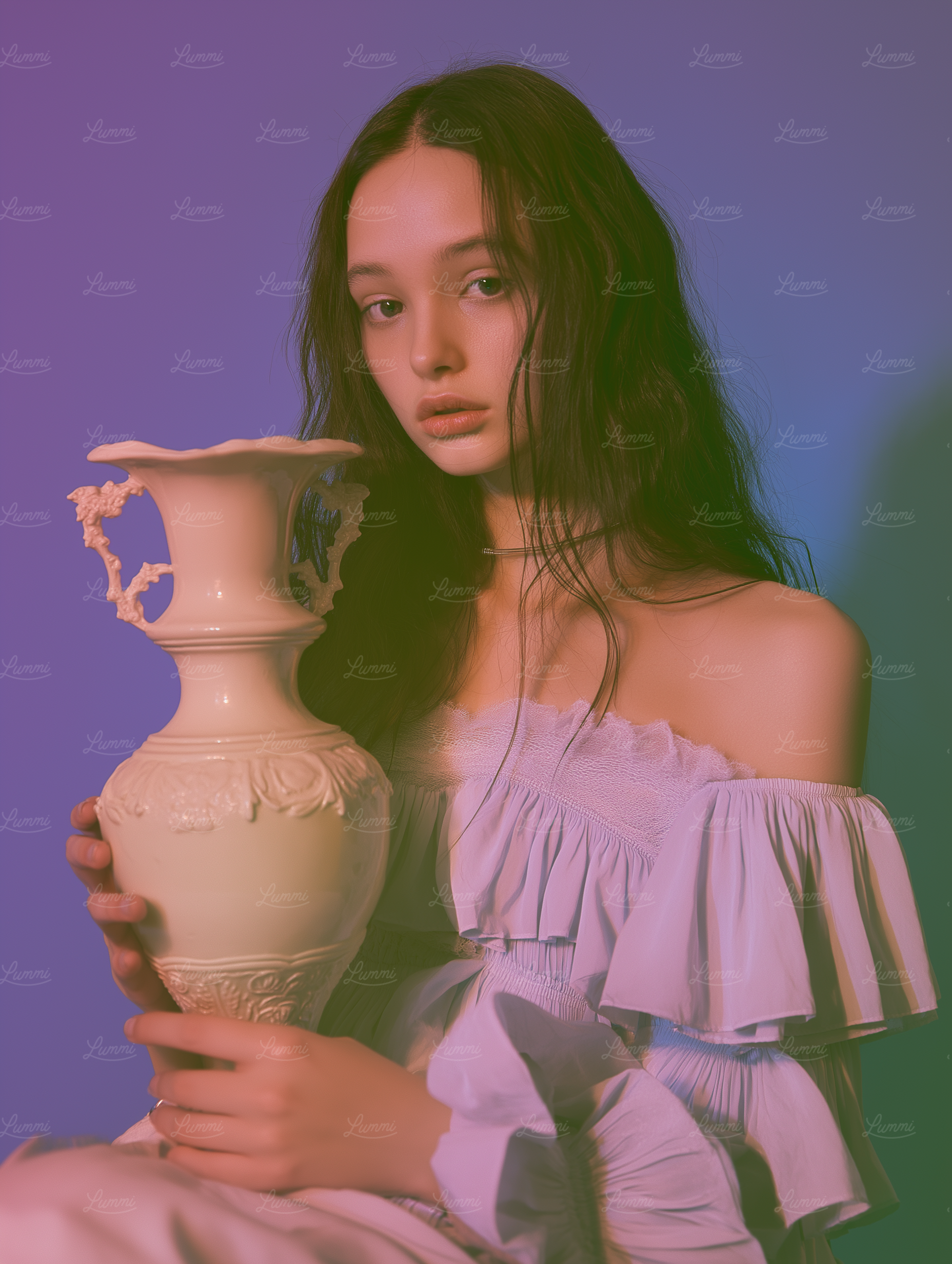 Woman holding vase