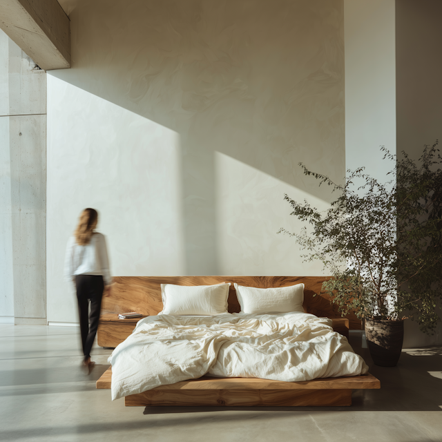 Wooden platform bed