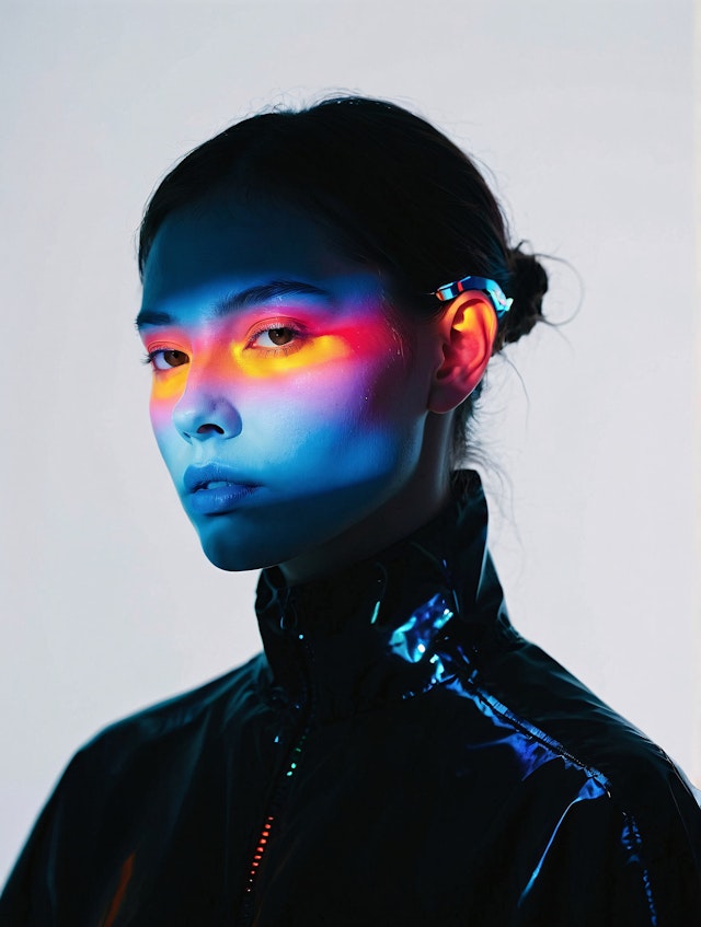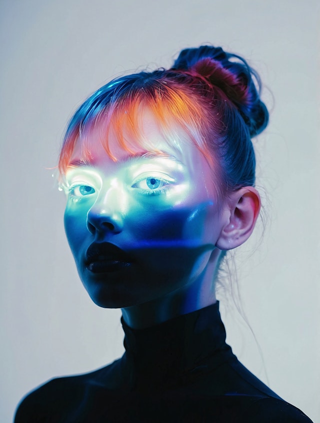 Identity and light at the intersection of humanity and technology through striking, futuristic portraits.
