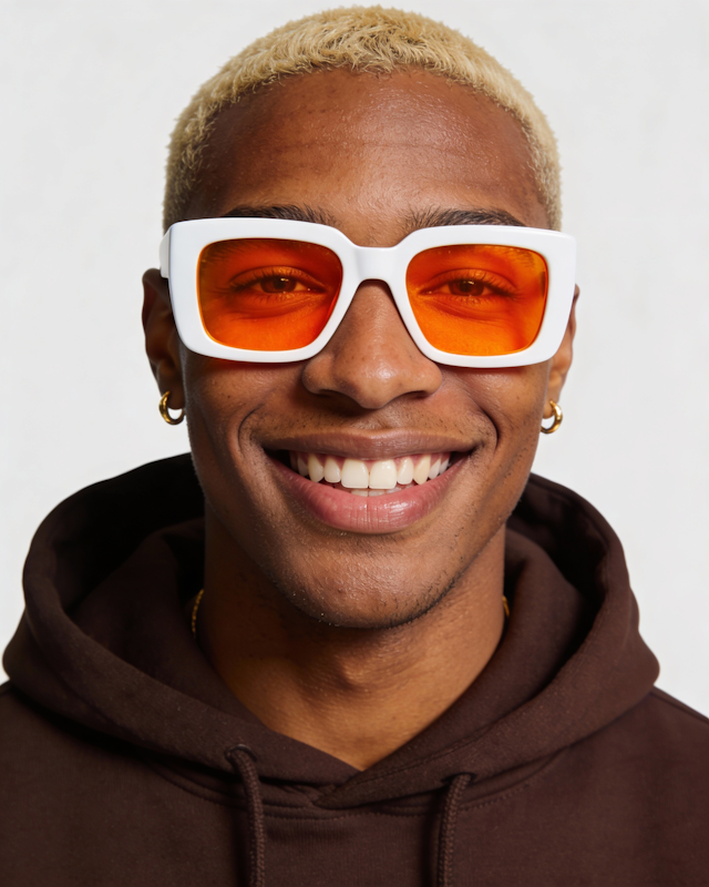 A portrait series exploring colour harmony through sunglasses and hoodies.